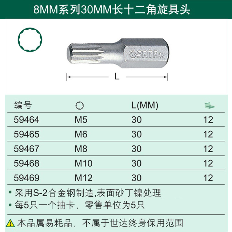 SATA Shida Tool Screwdriver Batch Head 8mm 8mm Series 30mm 30mm 12 Corner Triumph Head M5M6M8M10M12