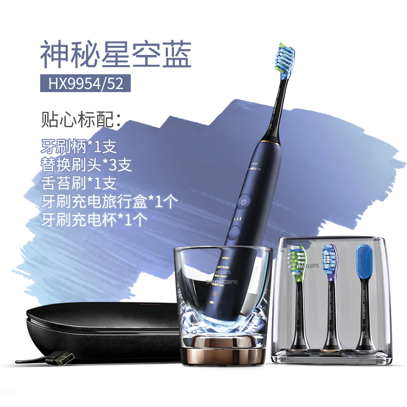 Philips electric toothbrush adult male and female intelligent APP fully automatic waterproof cleaning tooth HX9954 diamond brush