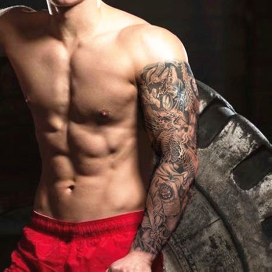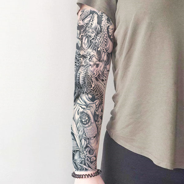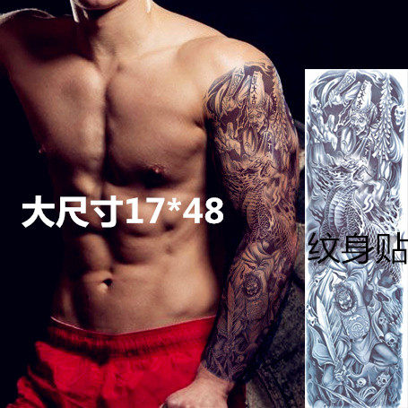 Whole arm tattoo sticker male black and white and uncommon bell ku ghost-hunting picture Kirin full arm overlock female models