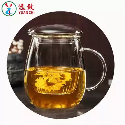 Thickened glass mug Flower tea cup Water cup Tea set Personal cup Drinking water with lid Tea set Office tea maker