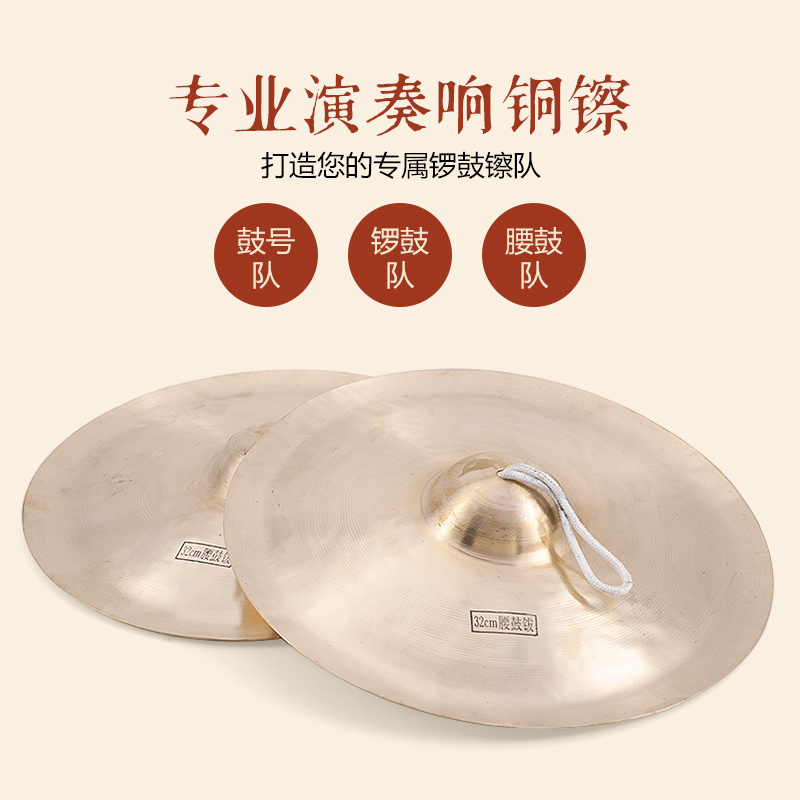15cm Small Kyo Hi (for Opera Snare Drum Team Performance) 17cm Middle Kyo Hi (for Opera Snare Drum Team Performance) 20cm Big Kyo Cymbals (for Opera Snare Drum Team Performance) 25cm Waist Drum Cymbals (for Waist Drum Team Snare Drum Team Performance) 27cm Waist Drum Cymbals (for Waist Drum Team Snare Drum Team Performance) 29cm Waist Drum Cymbals (for Waist Drum Team Snare Drum Team Performance) 32cm Waist Drum Cymbals (for Waist Drum Team Snare Drum Team Performance) 27cm Big Hat Cymbals (for Big Drum Team Gong Drum Cyano Band Performance) 30cm Big Hat Cymbals (For drum team gong drum cymbal band performance) 27cm cymbals (for waist drum team gong drum cymbal band performance) 31cm cymbals (for waist drum team gong drum cymbal band performance) 15cm thick cymbals (suitable for opera snare drum team performance) 18cm thick cymbals (suitable for opera snare drum team performance) 20cm thick cymbals (for opera snare drum team performance) 28cm thick cymbals (for waist drum team stag drum team performance) 30cm thick cymbals (for waist drum team snare drum team performance) 32cm thickened large cymbals (suitable for drum team stunt team performance)