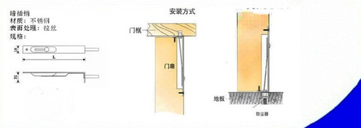 Aluminum alloy double switch mother and child door dark latch fire door latch Stainless steel concealed latch Double switch mother and child door extension