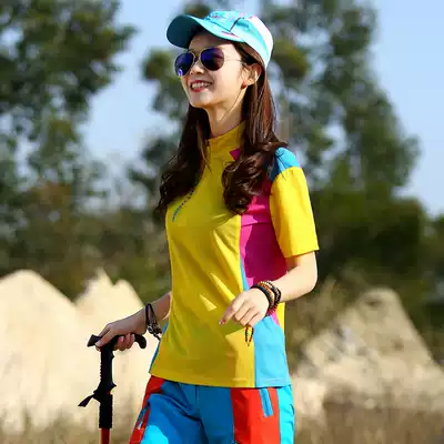 Outdoor quick-drying clothes women's short sleeve sports T-shirt stand-up collar breathable color-color running moisture wicking elastic quick-drying clothes summer