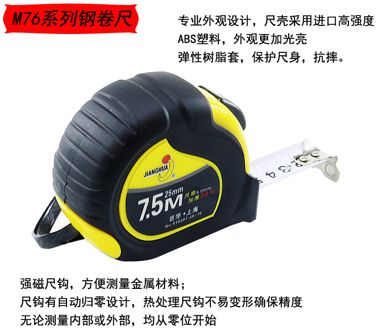 Carpenter Huaqiang magnetic ruler hook Class I precision resin coated anti-drop metric steel coil ruler 3 m 5 m 7 5 m 10 m