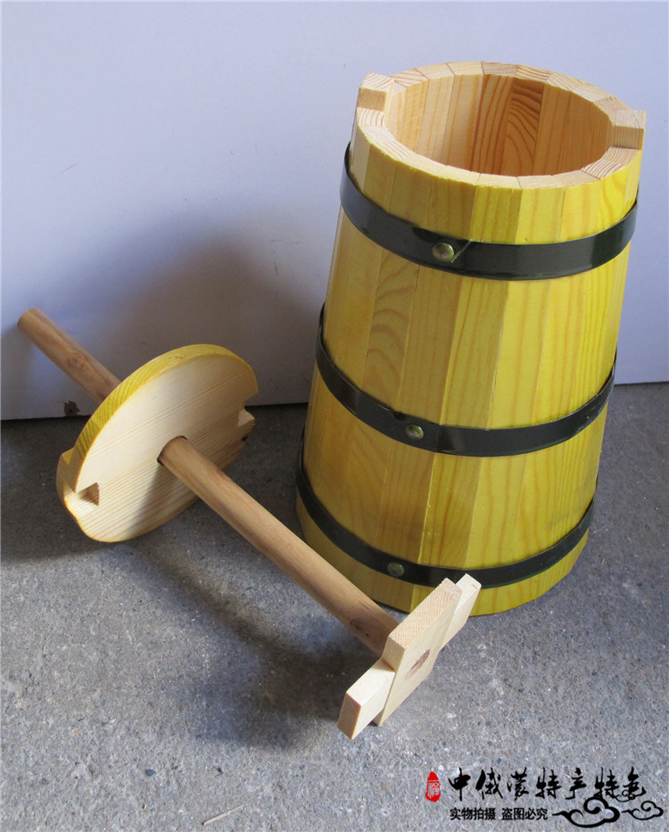 Yogurt barrel Mongolian handmade solid wood special tableware Mongolian special wooden milk bucket ethnic supplies characteristics of the craft