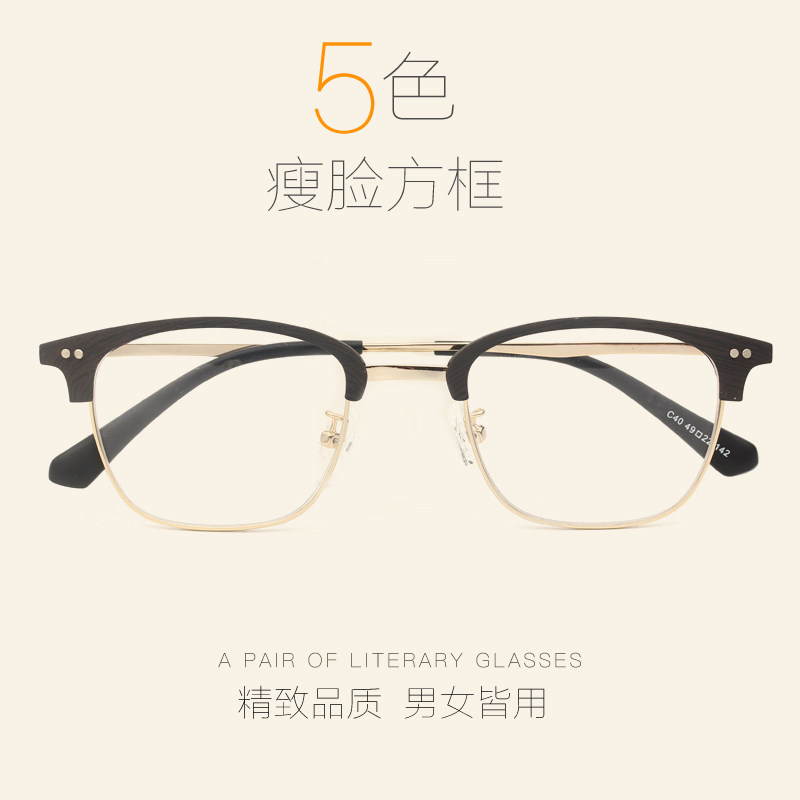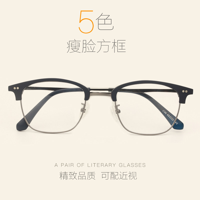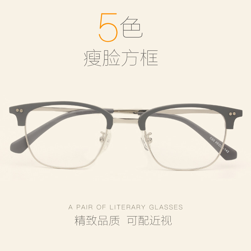 Han Edition Retro Eye Frame Male Nearsighted eye frame Spectacle Frame Woman Tide Half-Frame Flat Mirror Super Light Comfort and Nearsightedness