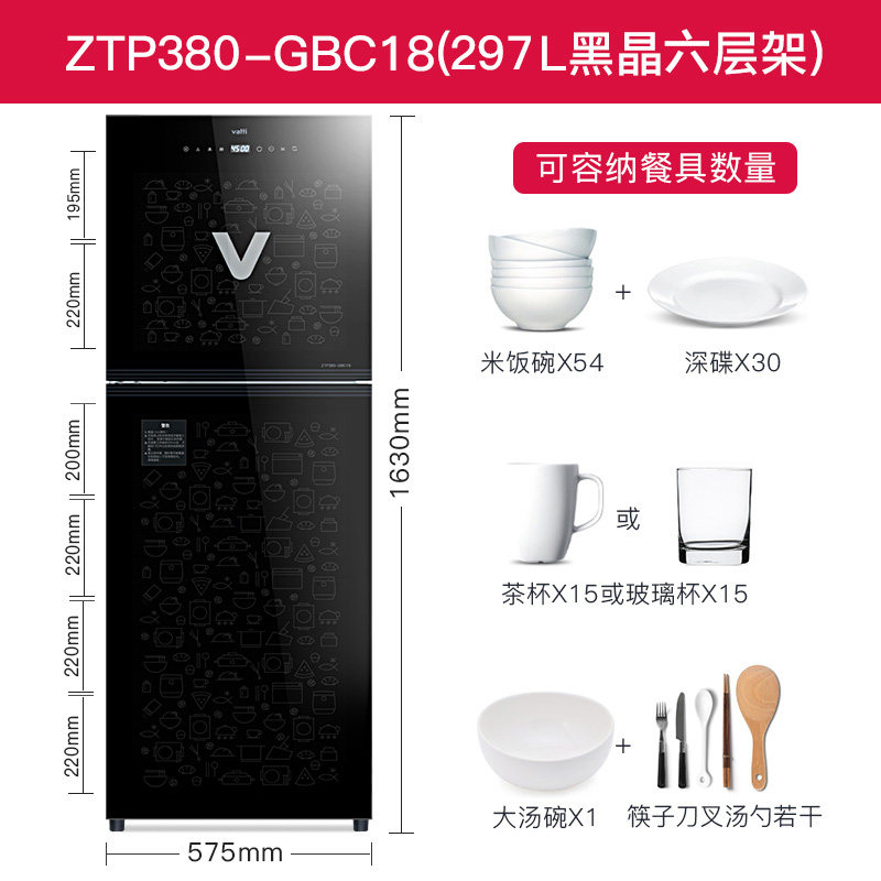 Huadi Disinfection Cabinet Home Large Capacity Vertical Touch Screen Negative Ion Light Wave High Temperature Bowl Cabinet ZTP380-GBC18