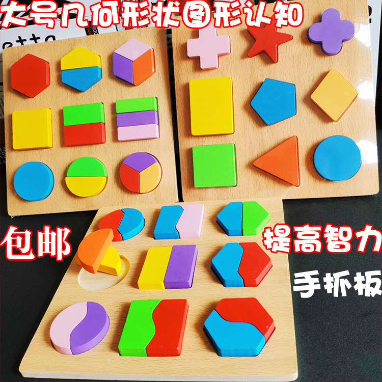 Montservers' early education educational teaching aid for children aged 0-3 years old, hand-held board, geometric puzzle shape, matching toy graphic panel
