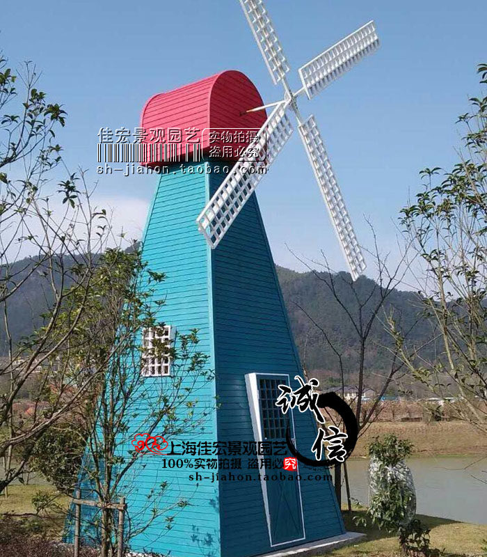 Anti-corrosion wood windmill Dutch windmill landscape windmill outdoor large windmill solid wood windmill electric pastoral windmill