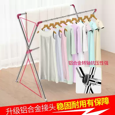 Clothes rack floor folding indoor clothes rack Household balcony double rod outdoor stainless steel telescopic drying quilt artifact