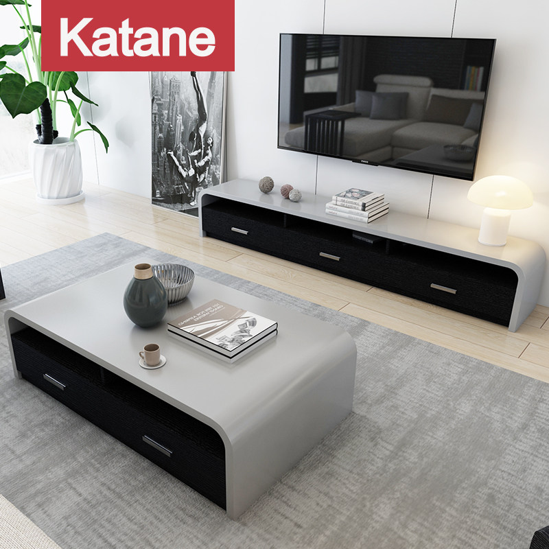 Modern furniture Nordic TV cabinet tea table combination living room TV cabinet small family wooden paint simple floor cabinet