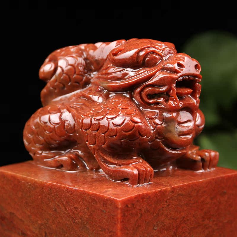 Jade seal large ornament Shoushan stone ancient beast Ganlong jade seal gold stone seal engraving seal gift collection chapter 8x8x13