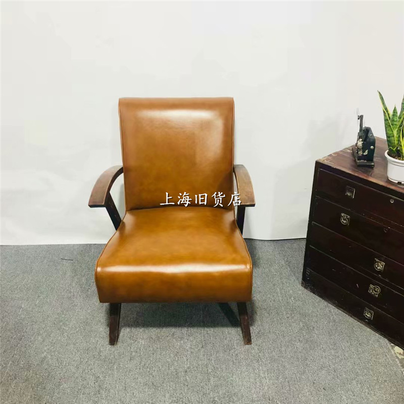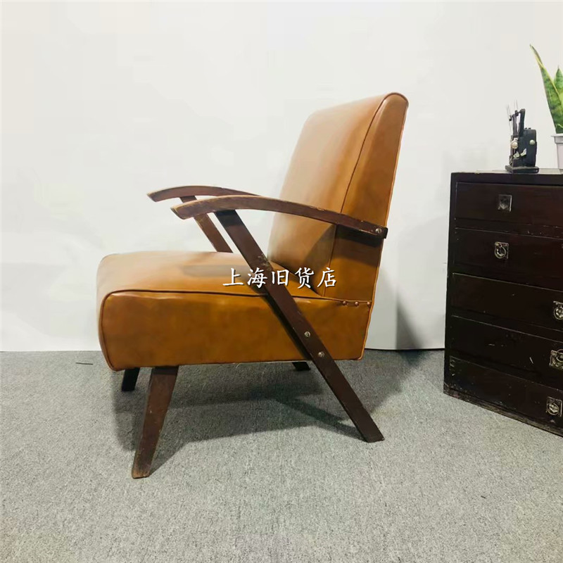 Cultural Revolution Antique Diagonal Armrest Sofa Chair Old Wood Armrest Old Sofa Coffee Color Sofa single available only