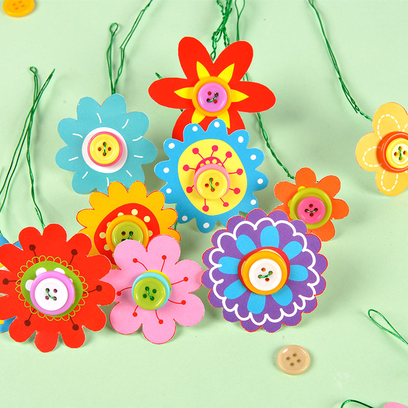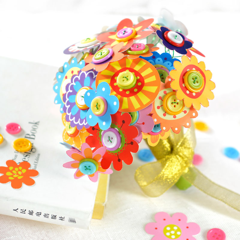 Children's handmade material Package Baby Diy Kindergarten Painting Creativity Puzzle three-dimensional button Flowers Toys