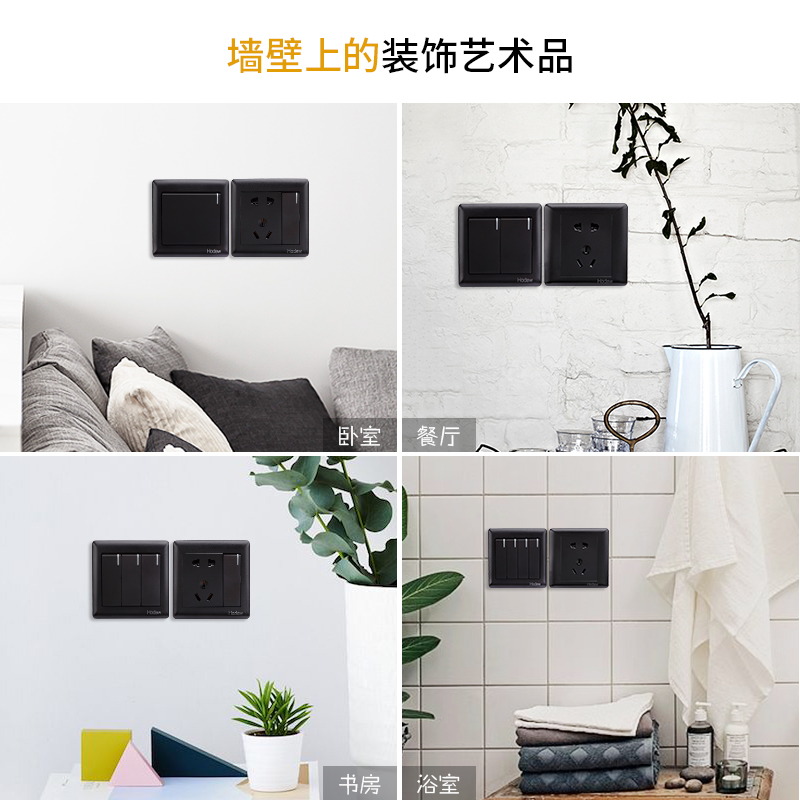 Type 86 10A pure black switch socket matte single double cut one open five-hole switch computer air conditioner socket household