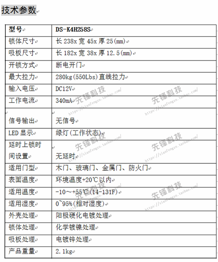 Haikang Ming installation 280KG single door magnetic lock feedback DS-K4H258S DS-K4H258SS electromagnetic lock