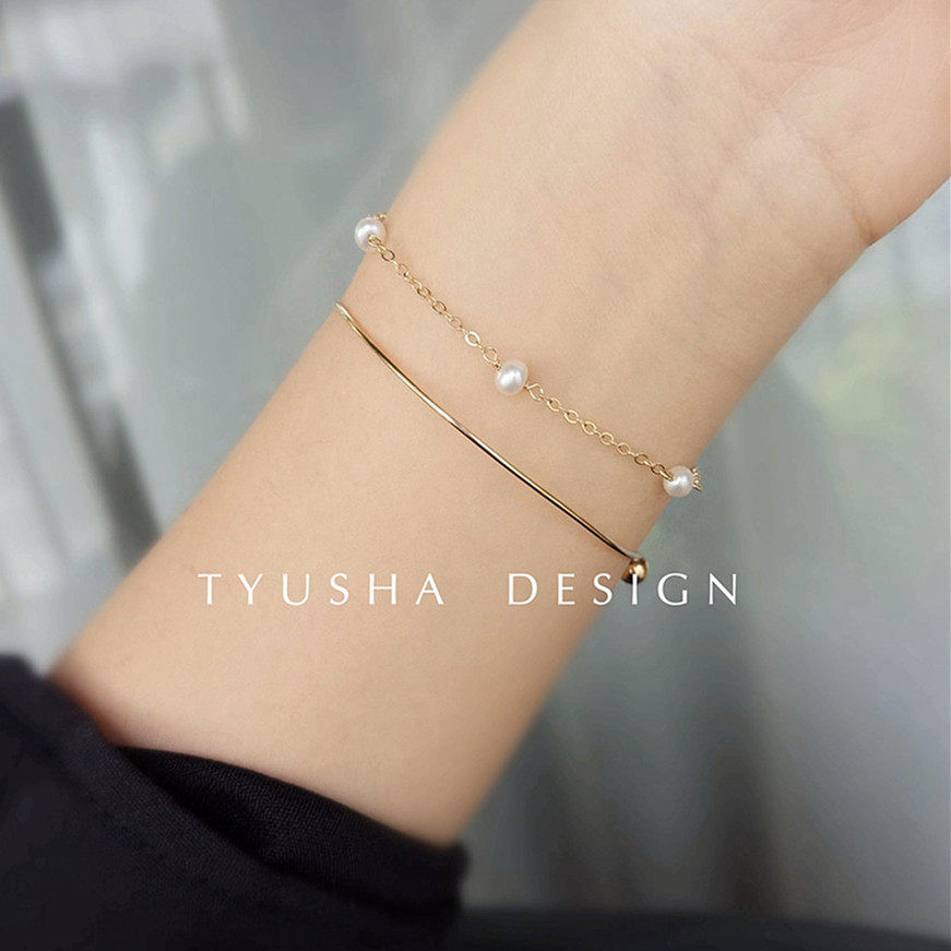 TYUSHA Classic Natural Freshwater Pearl Imports 14k Note full Star Lock Bone Chain Necklace Bracelet Bracelet