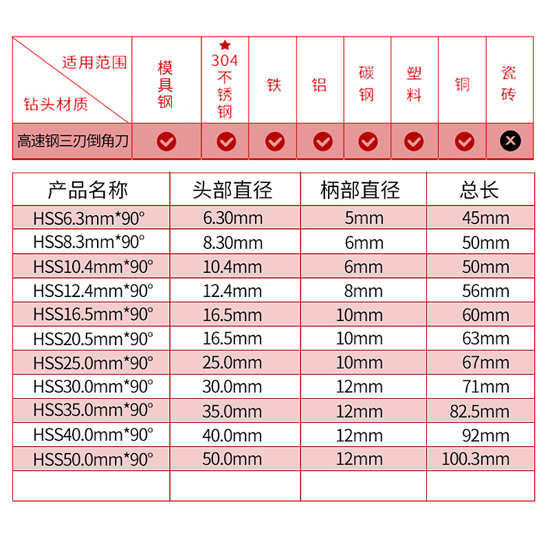 Jiangsu Day Work Single Three-Edged Chamfered Knife 90 ° Round Hole Chamfered Drill Bit 4 5-60mm High Speed Network M2 countersink drill