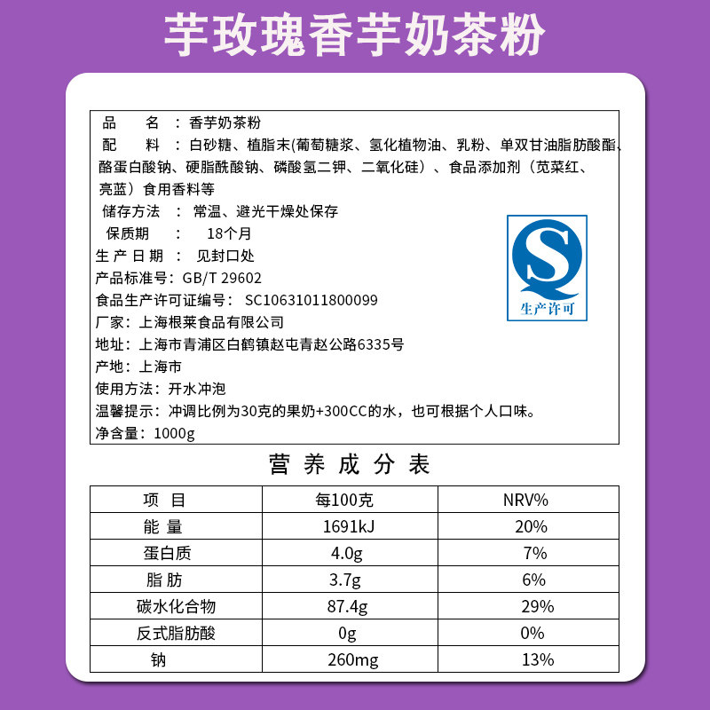 Taro Rose Taiwanese Dessert Ingredients Instant Taro Milk Tea Powder Milk Tea Shop Special Raw Material Fragrant Bag 1000g
