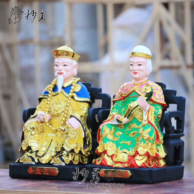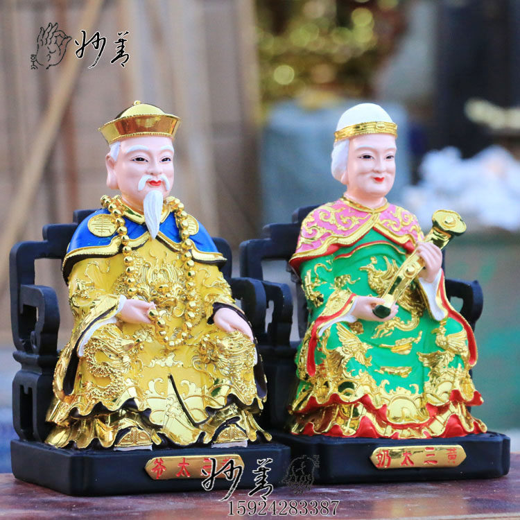 12-inch colorful yellow three-tiered milk painted 30cm Northeast Baojia Xian resin buddha statue Yellow three-tiered milk safe