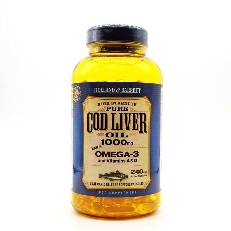 UK HB Homer HollandBarrett Omega3 yellow fish oil deep sea cod liver oil capsule 240 grains