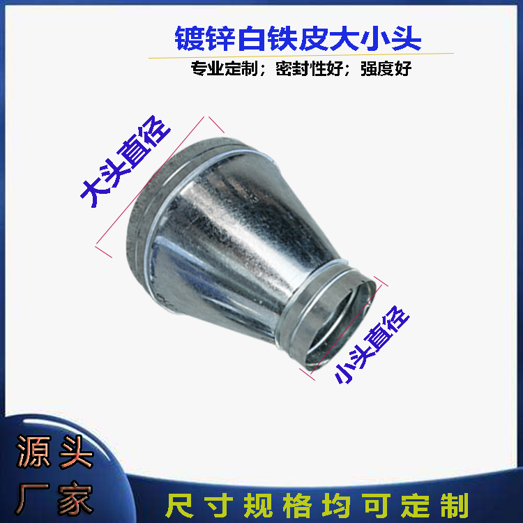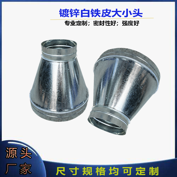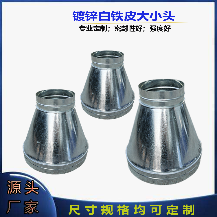 Customized galvanized white iron sheet size head air duct pipe fittings adapter variable diameter internal connection reducing elbow can be customized