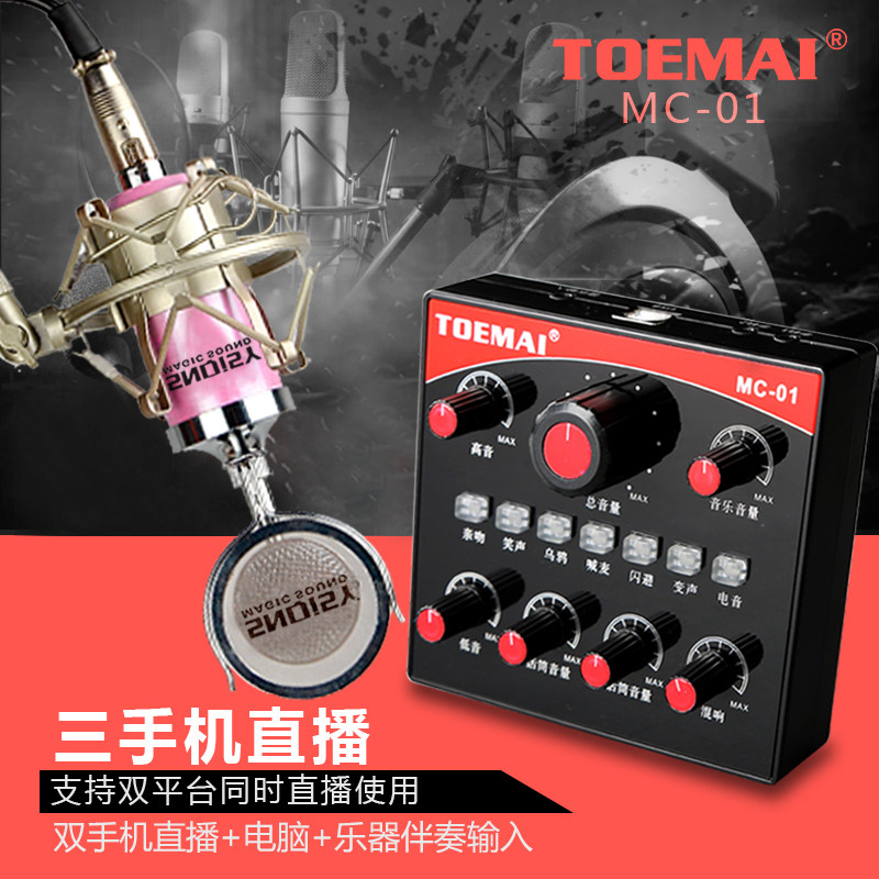 Double mobile phone Computer sound card suit Three mobile phone live laughter electric voice changing tone singing, K Song Quick Hand Projector Anchor