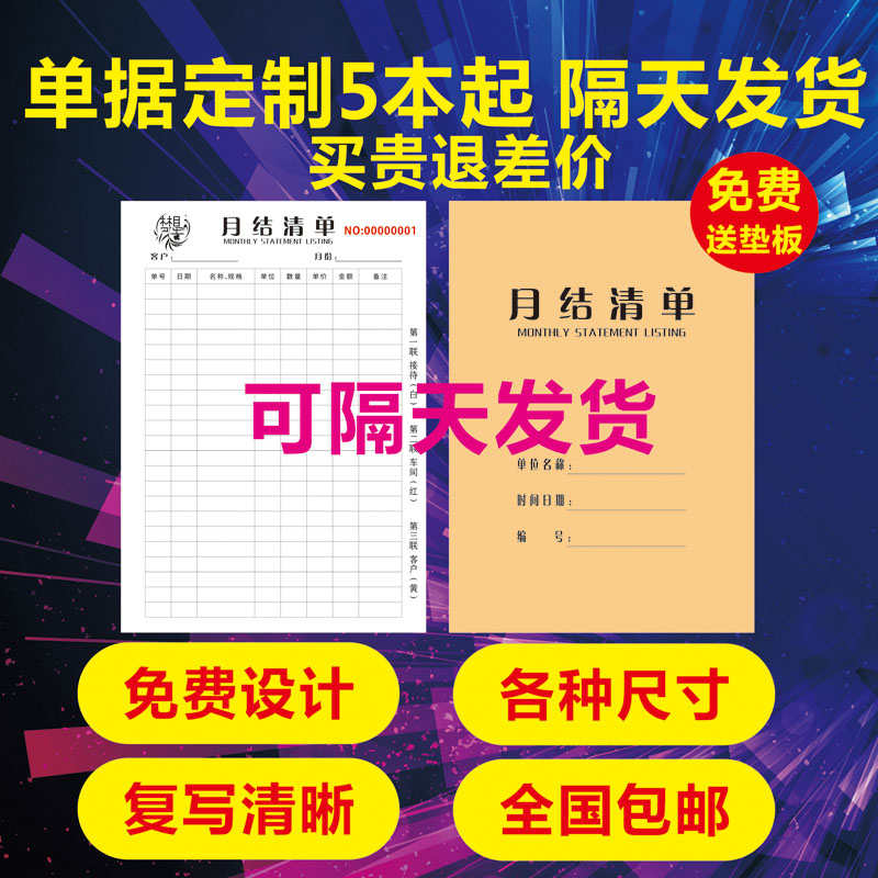 Customized receipts, customized reimbursement documents, double triple quadruple bills, delivery orders, sales list, non-carbon compound printing, custom-made storage single point menu collection book