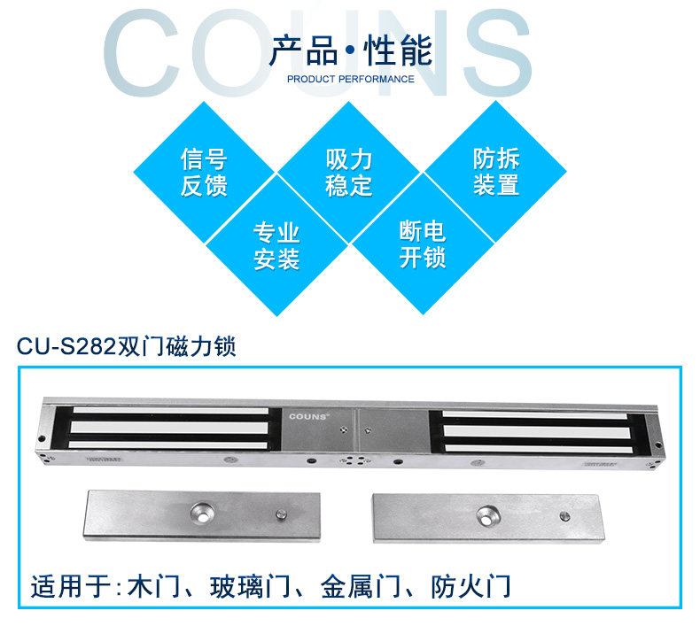 COUNS High Yoite Price CU-S282 Double door Magnetic lock 280KG Double access magnetic lock Magnetic lock electric control lock