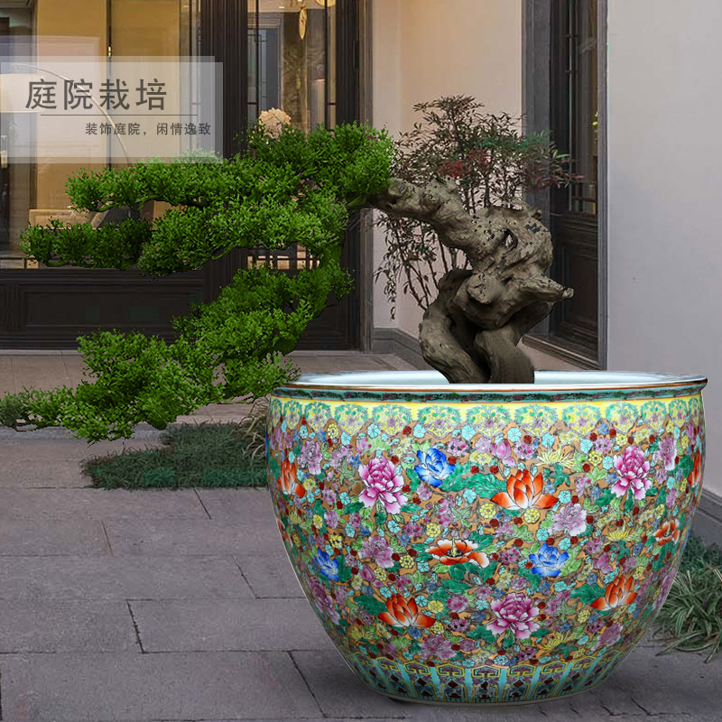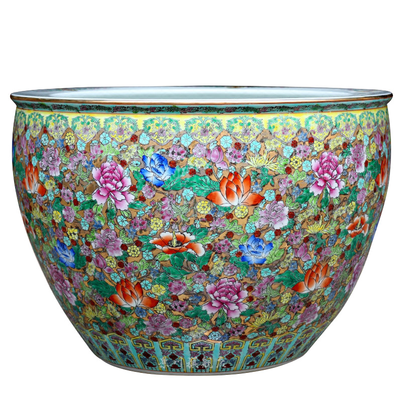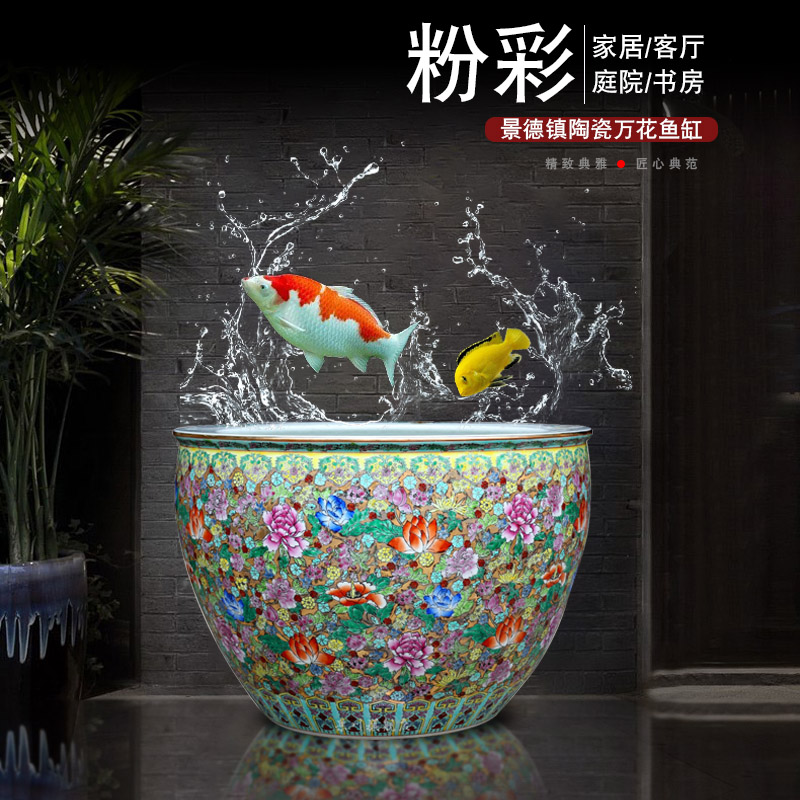 Jingdezhen Ceramic Ware Handmade Powder Color Lotus Gold Fish Tank Pendulum of calligraphy and calligraphy scroll containing pint of turtle cylinder big water cylinder