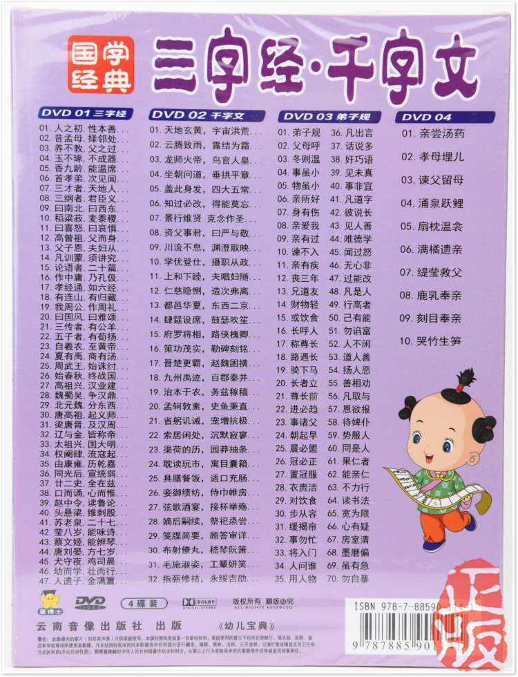 Chinese Classics Disciple Rules Thousand Characters HD Picture Quality Genuine Children's Education Recommended CD 4DVD