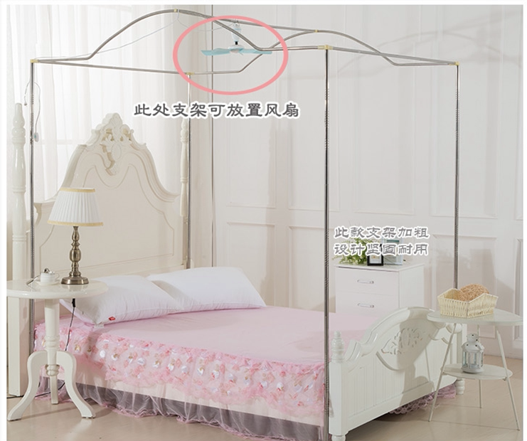 Heightened mosquito net bracket three-door thickened stainless steel tube arched floor-to-ceiling mosquito net bracket rod can hang fan