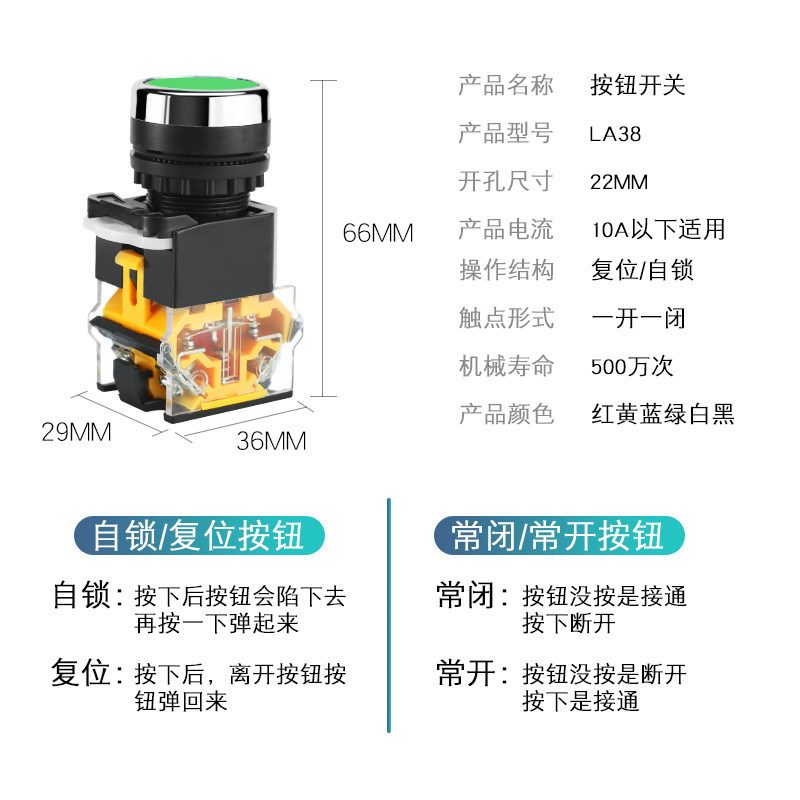 LA38-11BN button switch power supply self-locking start stop self-reset jog button BNZS switch 22mm