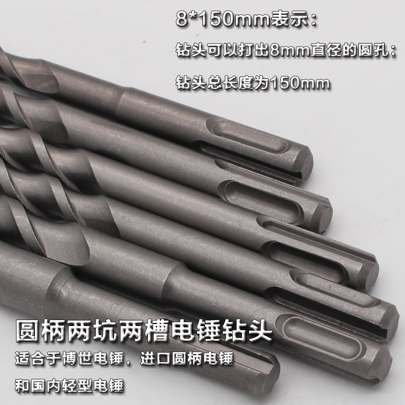 Round handle two-pit two-slot impact drill Cement concrete alloy drill Garden handle rotary hammer drill bit 6 8 9 12mm