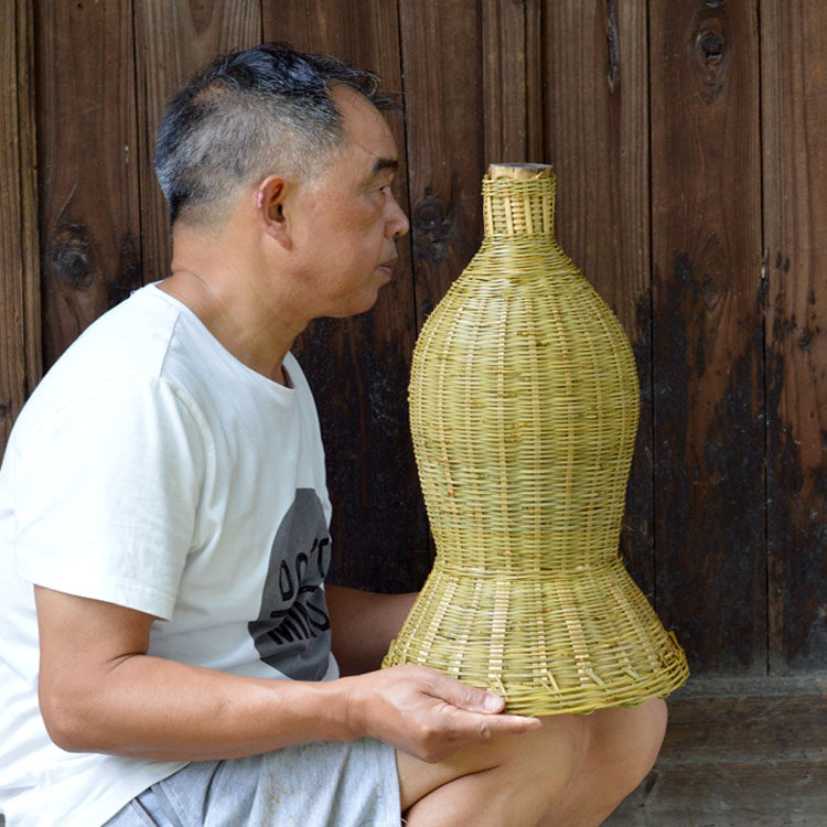 Creative Head Layer Bamboo Leather Handicraft Smoked Bamboo Woven Yellow Eel Cage Clay Caged Lampshade Shaped Decoration With Lid Catching Shrimp Cage