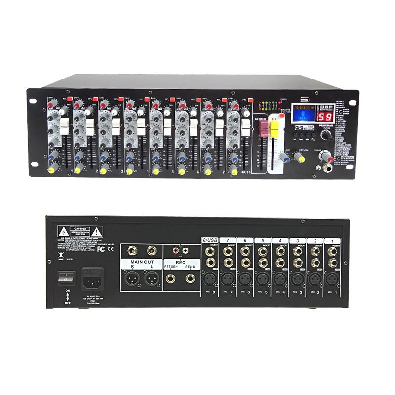 8-way Professional rack mixer with USB with effect Bluetooth Conference Performance Wedding Engineering Upper enclosure use