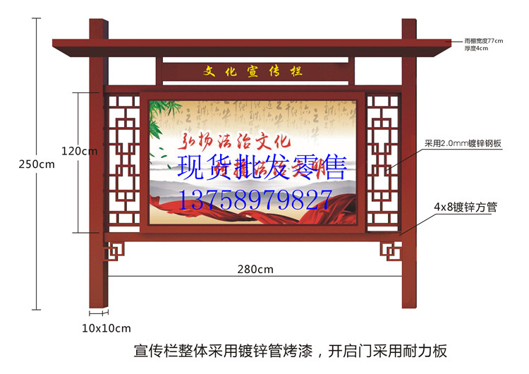 Spot custom stainless steel paint imitation of wood printed promotional column party building cultural gallery bulletin classification