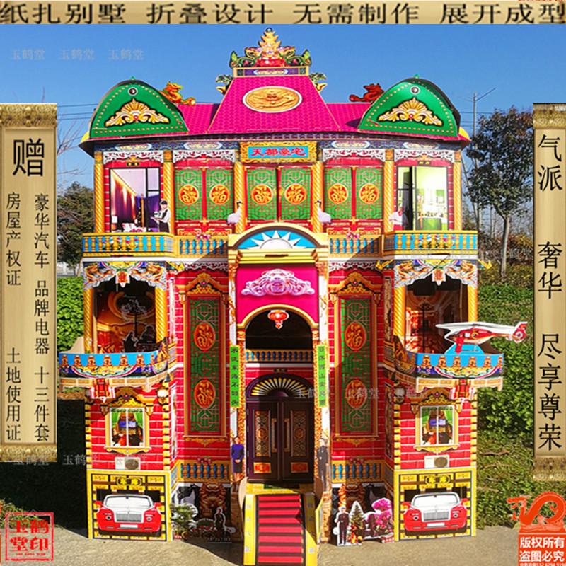 Sacrificial supplies 1.80 m medium folding paper house villa convenient free production buy a house to send a car anniversary festival