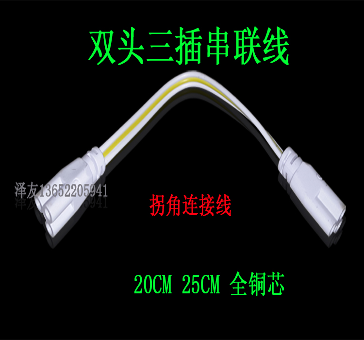 T5T8 fluorescent light triple hole butted single head line bracket lamp double head connecting wire can be connected in series joint two-plug three-plug