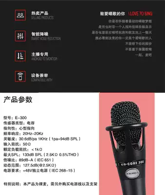 E-300 handheld condenser microphone yy anchor recording K song MC shouting wheat mobile phone sound card device microphone set