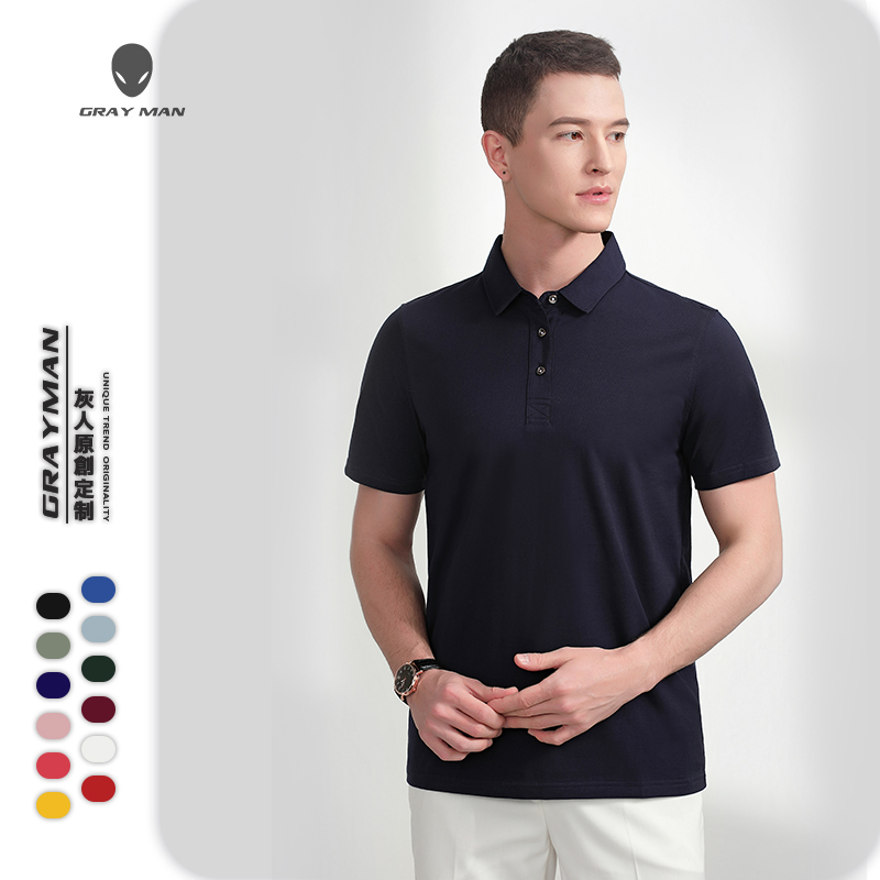 High-end solid color POLO shirt custom pure cotton lapel short-sleeved corporate clothing cultural shirt printing logo embroidery