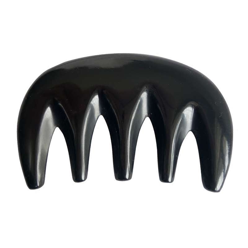 Famous horn craftsman Black water horn head five-tooth meridian massage scraping comb handmade for self-use gift good