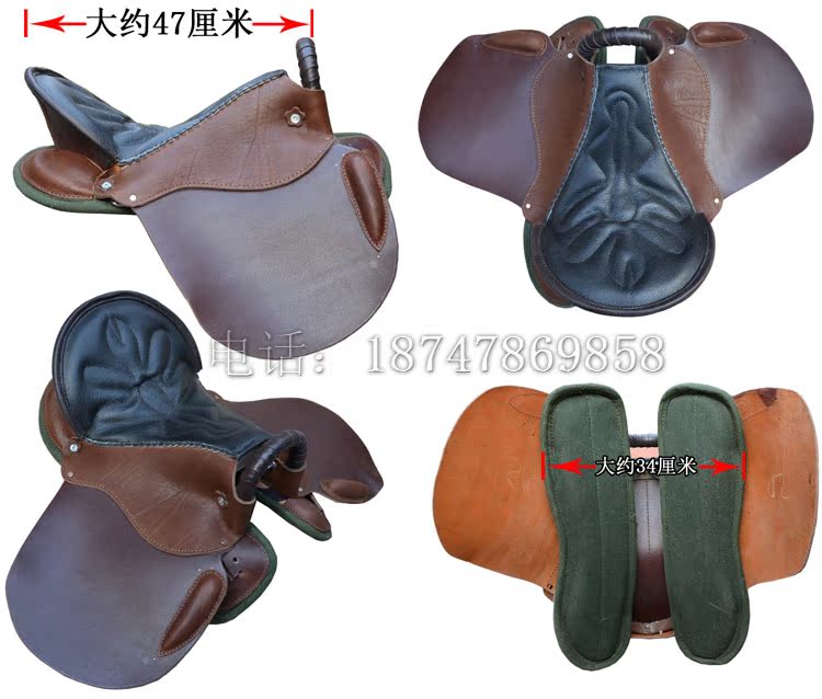 Brown pure cow leather tourist saddle saddle horse with full set accessories Ma saddles 8 pieces of equestrian items comfortable