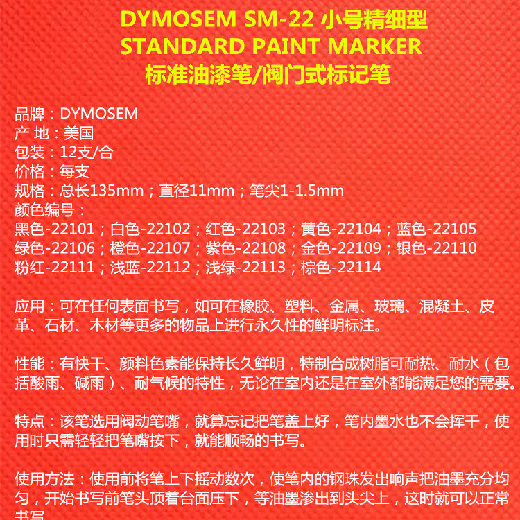 Imported Dymosem Standard Paint Pen SM-22 Refined Fine Valve Type pen oily waterproof and resistant to sunburn