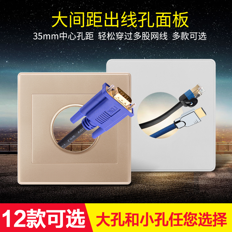 Type 86 blank panel with outlet hole blocking cover TV wall socket network cable white cover switch blocking hole through the wire hole