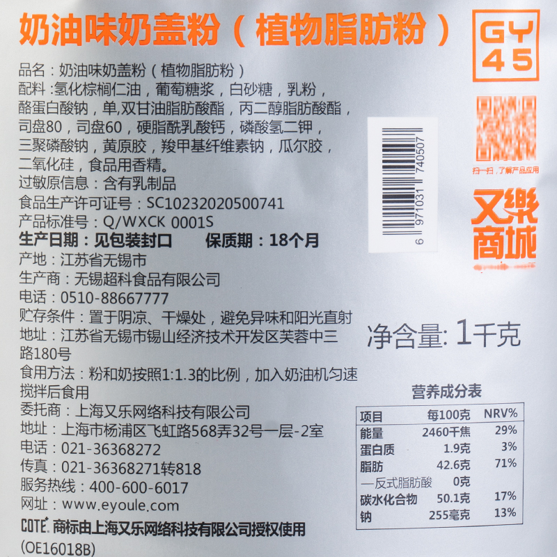 Youle COTE creamy milk cap powder 1kg bag commercial catering raw milk tea shop milk cap tea powder milk cap tea powder