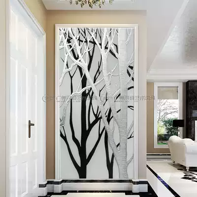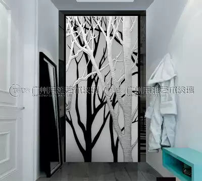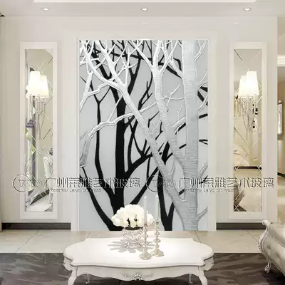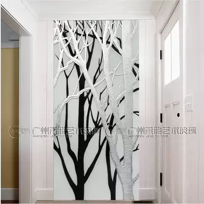Carving art glass living room TV background wall screen shoe cabinet partition transparent porch craft black and white tree