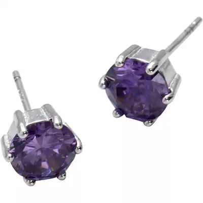 Ear needle female sterling silver simple personality 925 silver jewelry Korean version of temperament Joker earrings student amethyst small ear bone nail
