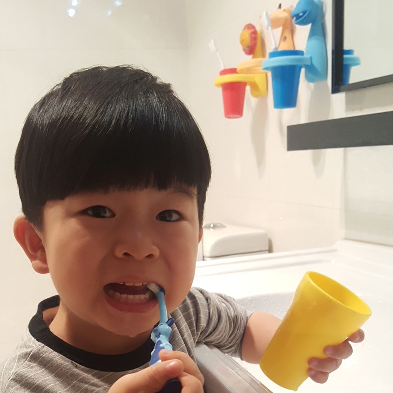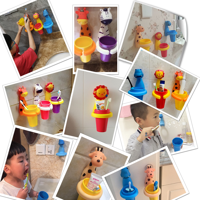 Yellow red purple pink blue orange little bee little whale little yellow dog little penguin little lion giraffe each tooth cup sends a cartoon toothbrush