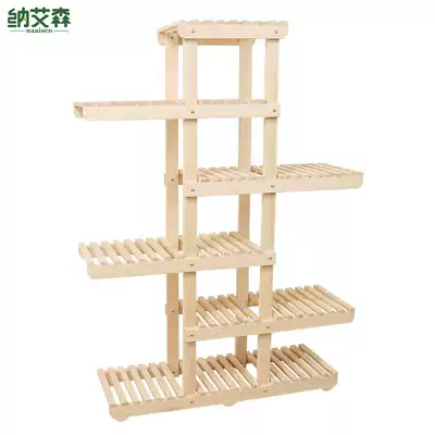Flower rack Solid wood floor-to-ceiling balcony Multi-layer golden ge flower rack Balcony potted shelf Living room plant wooden shelf